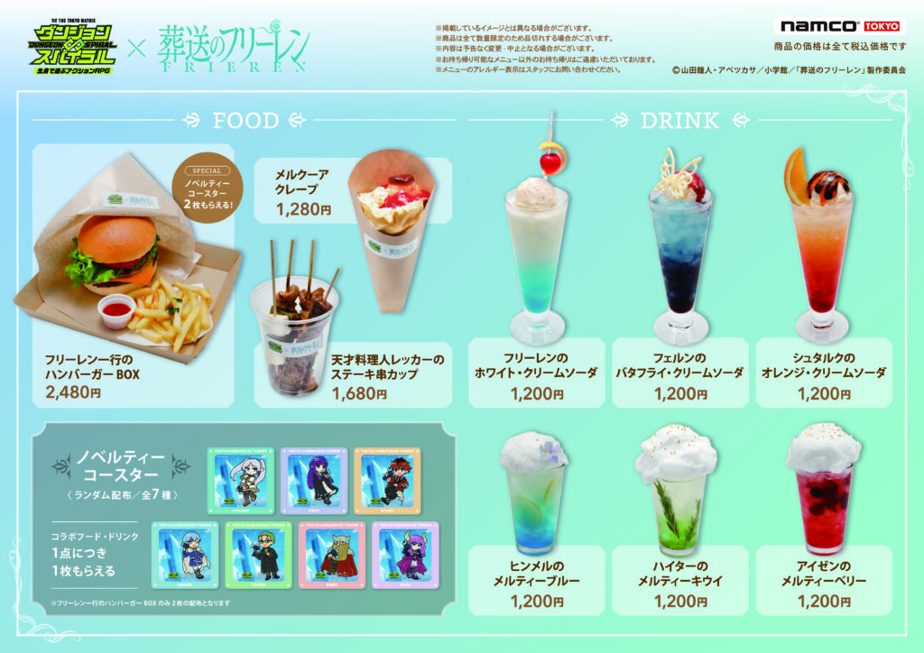 フリーレンキャラたちをイメージしたコラボフードやドリンクの提供。