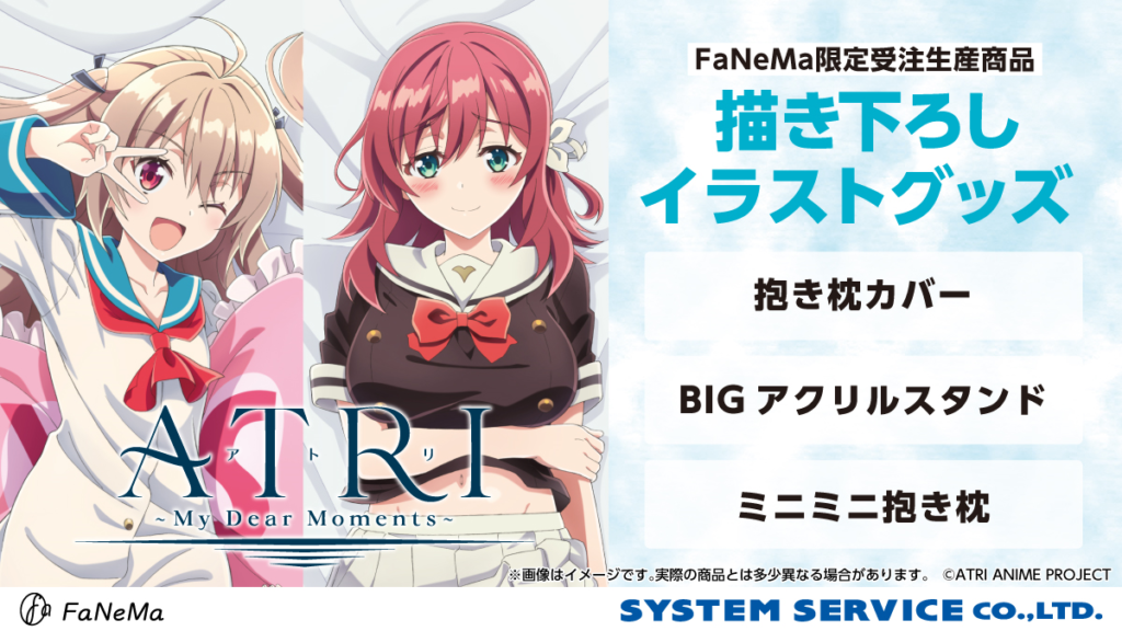 TVアニメ『ATRI -My Dear Moments-』より、「抱き枕カバー」「ミニミニ抱き枕」「BIGアクリルスタンド」が発売決定!